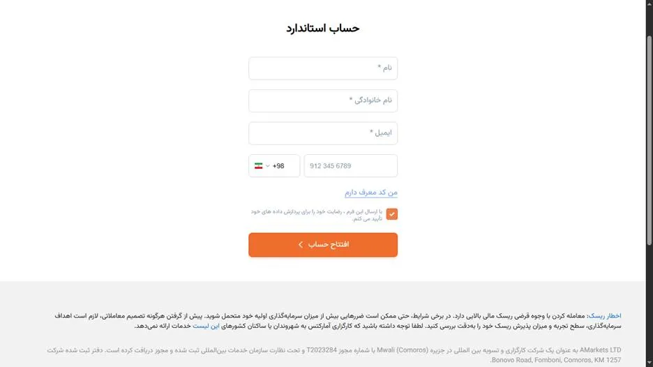 فرم ثبت نام در بروکر آمارکتس را تکمیل کنید