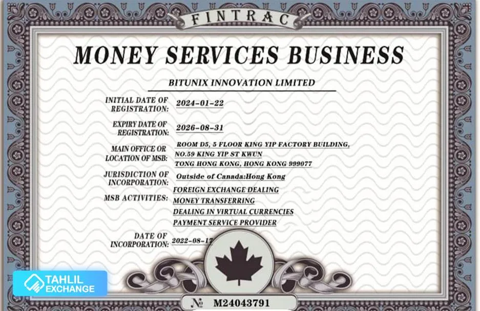 در سال های اخیر صرافی bitunix، موفق شده که در کشور های مختلف مجوز های مختلف و معتبری را اخذ کند. از جمله این مجوز ها و رگولاتوری ها می توان به مجوز MSB کانادا اشاره کرد. مرکز تجزیه و تحلیل تراکنش های مالی و گزارش های کانادا (FINTRAC) این مجوز را در سال 2024 به این صرافی اعطا کرد.