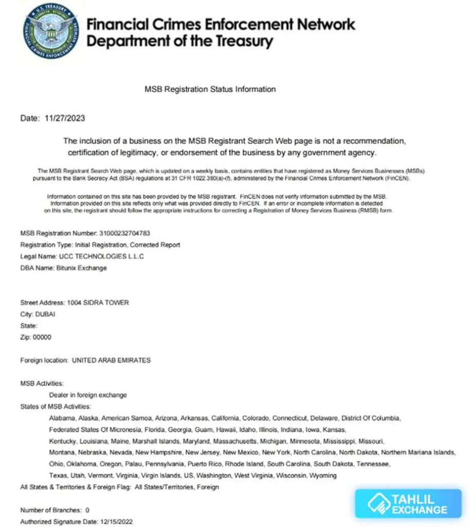 صرافی بیت یونیکس مجوز MSB آمریکا نیز در اختیار دارد. این صرافی با این مجوز خدماتی همچون انتقال پول بین المللی، معامله ارز خارجی و تراکنش های ارز دیجیتال را می تواند به کاربران خود ارائه کند.