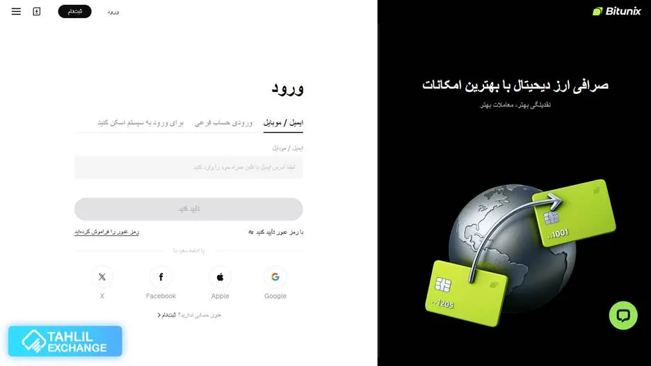 ثبت نام و ورود به صرافی بیت یونیکس
