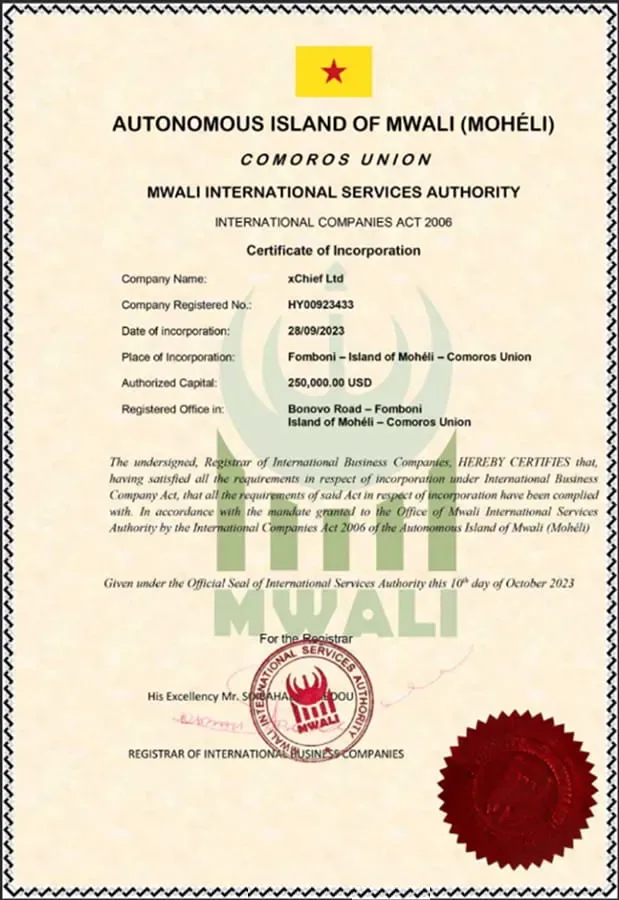 ثبت رسمی بروکر ایکس چیف در کمیسیون اوراق بهادار و سرمایه گذاری استرالیا ASIC