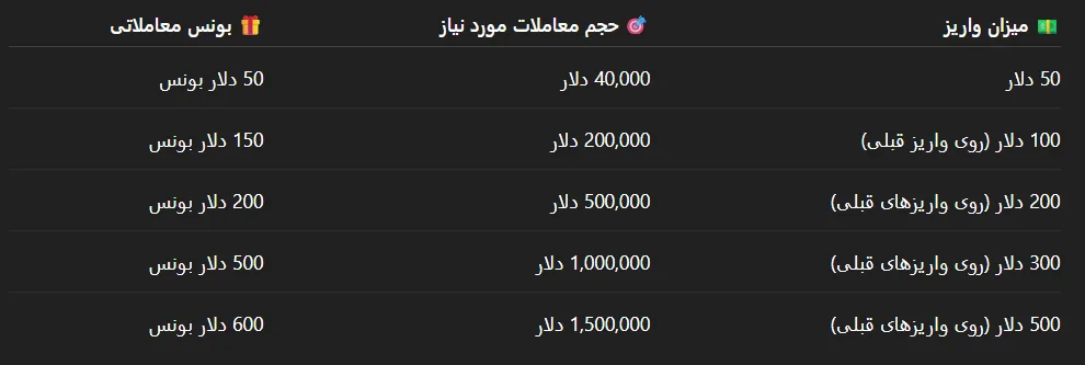 - این بونسها بهصورت اعتبار معاملاتی (Trading Bonus) ارائه میشوند.