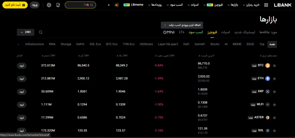 بررسی کارمزد معاملات در فیوچرز صرافی lbank